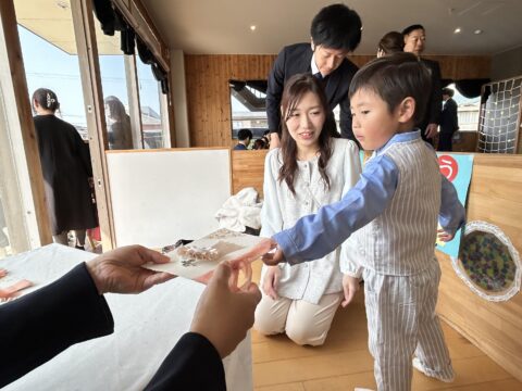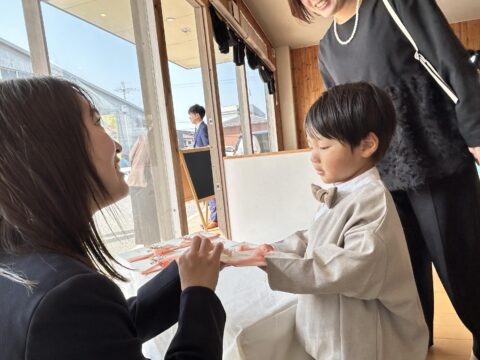 子どもたちからお家の方へプレゼント渡し♡