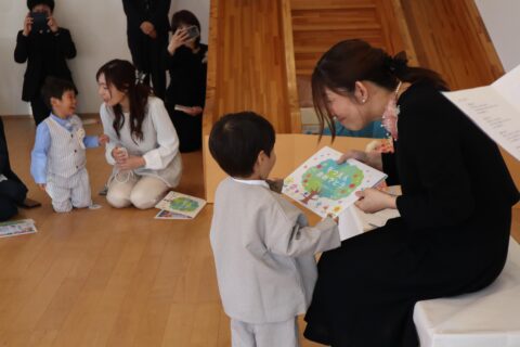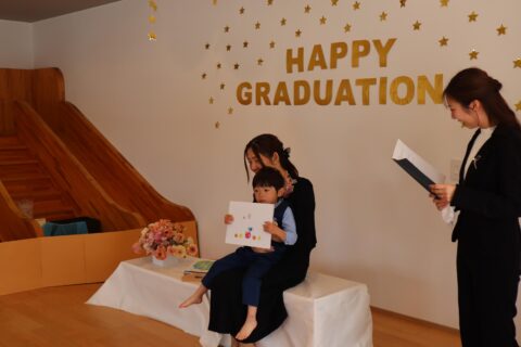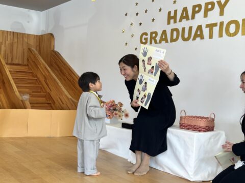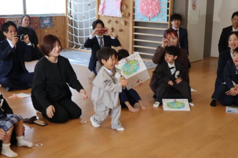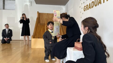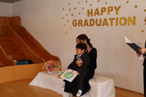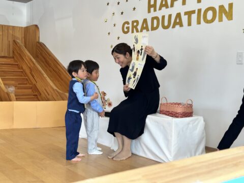 最後には卒園記念品を受け取り嬉しそうにお家の方に見せていましたよ☺
