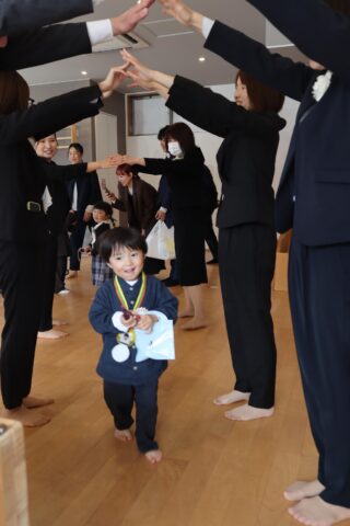 退場は、先生たちのトンネル花道を通って🌸