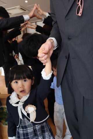 小さな声で返事をし、園長先生の元へ行く子と姿は様々😌